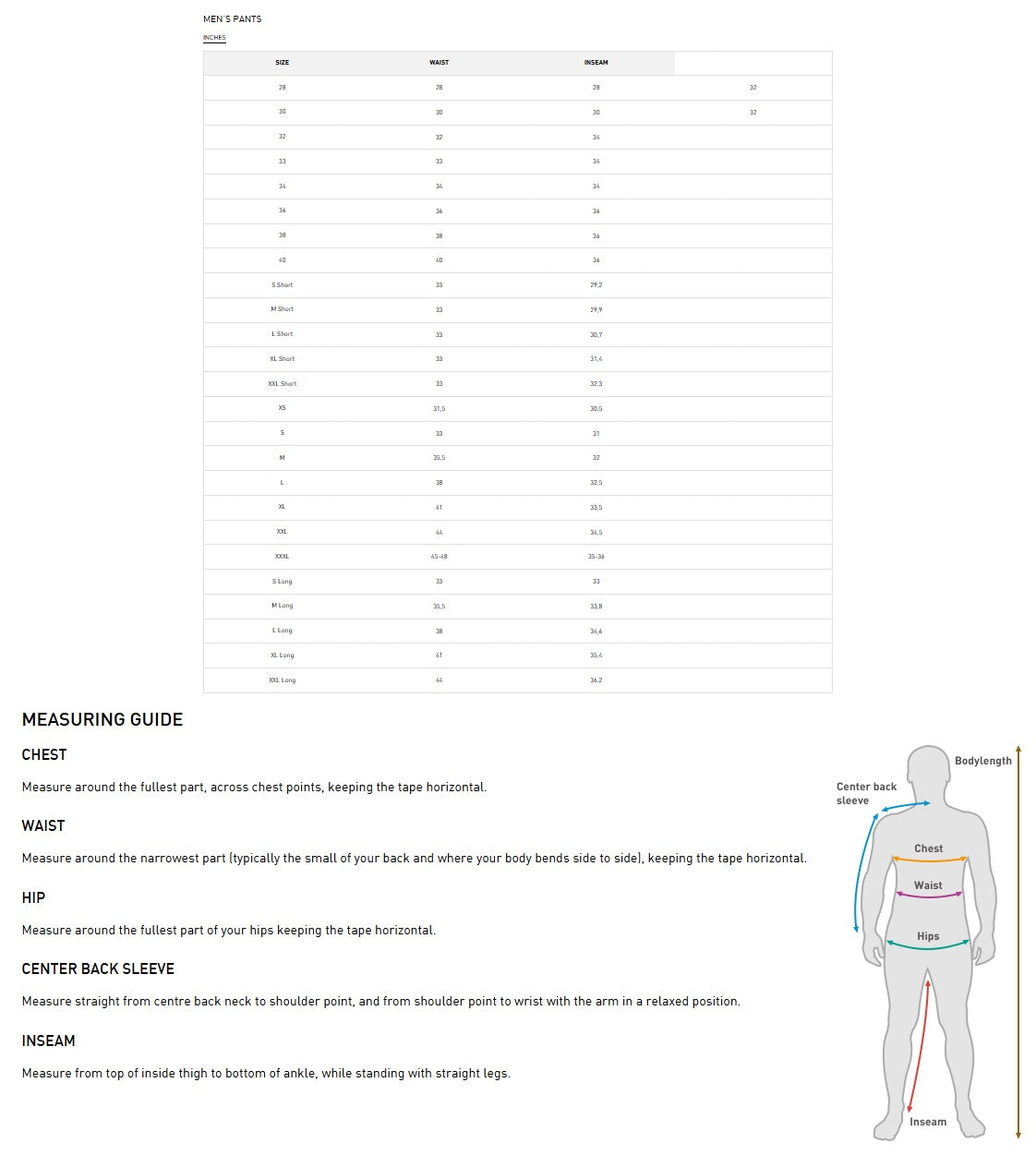 | XXL Short | 33 | 32,3 | |